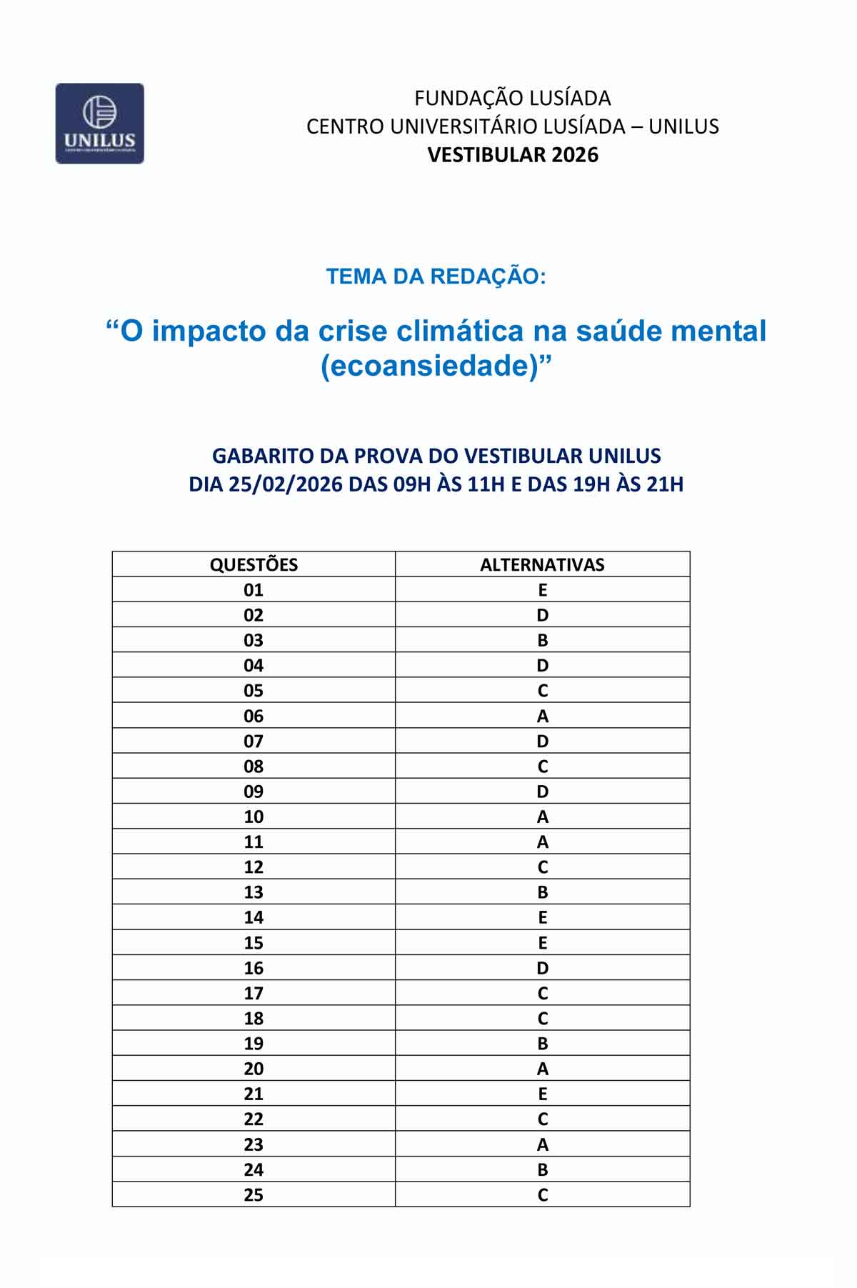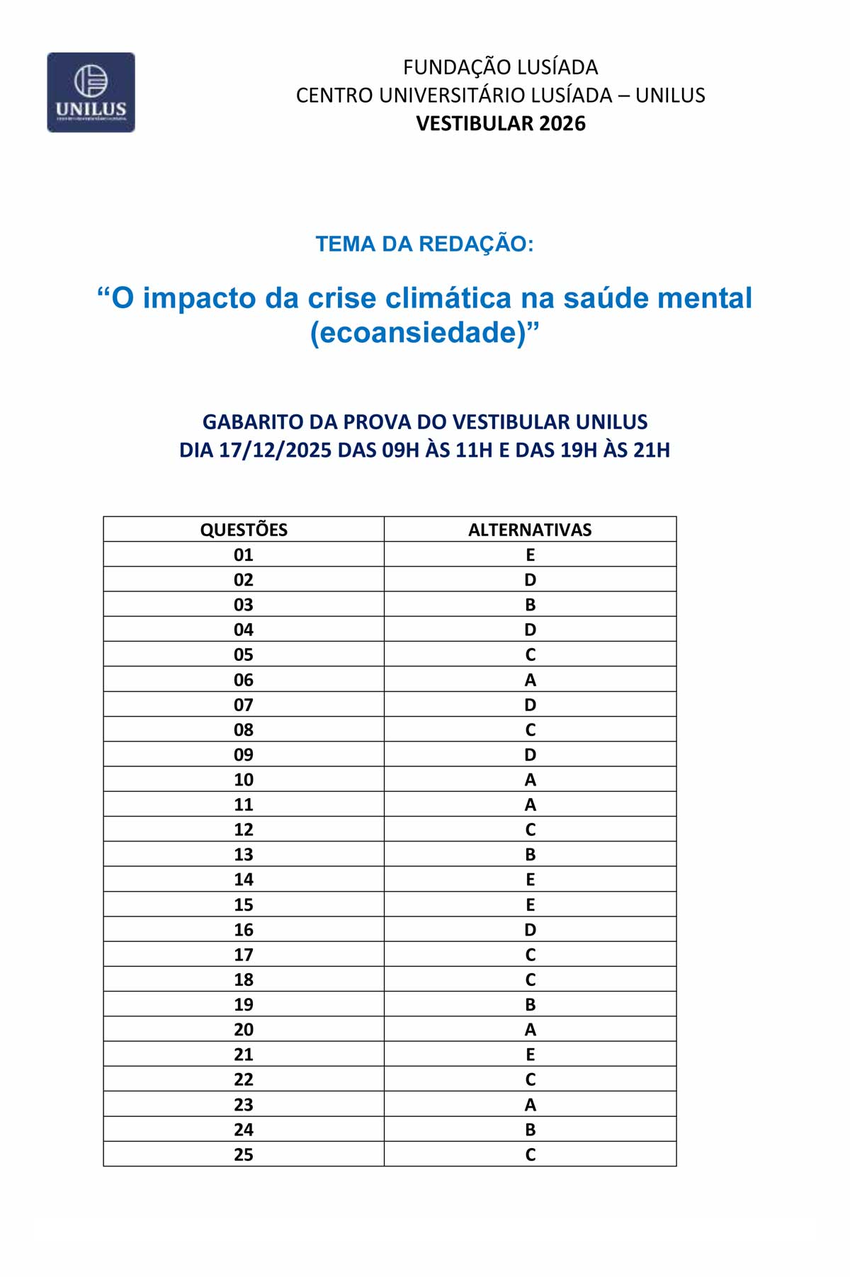 © 2025 UNILUS - Centro Universitário Lusíada. Todos os direitos reservados